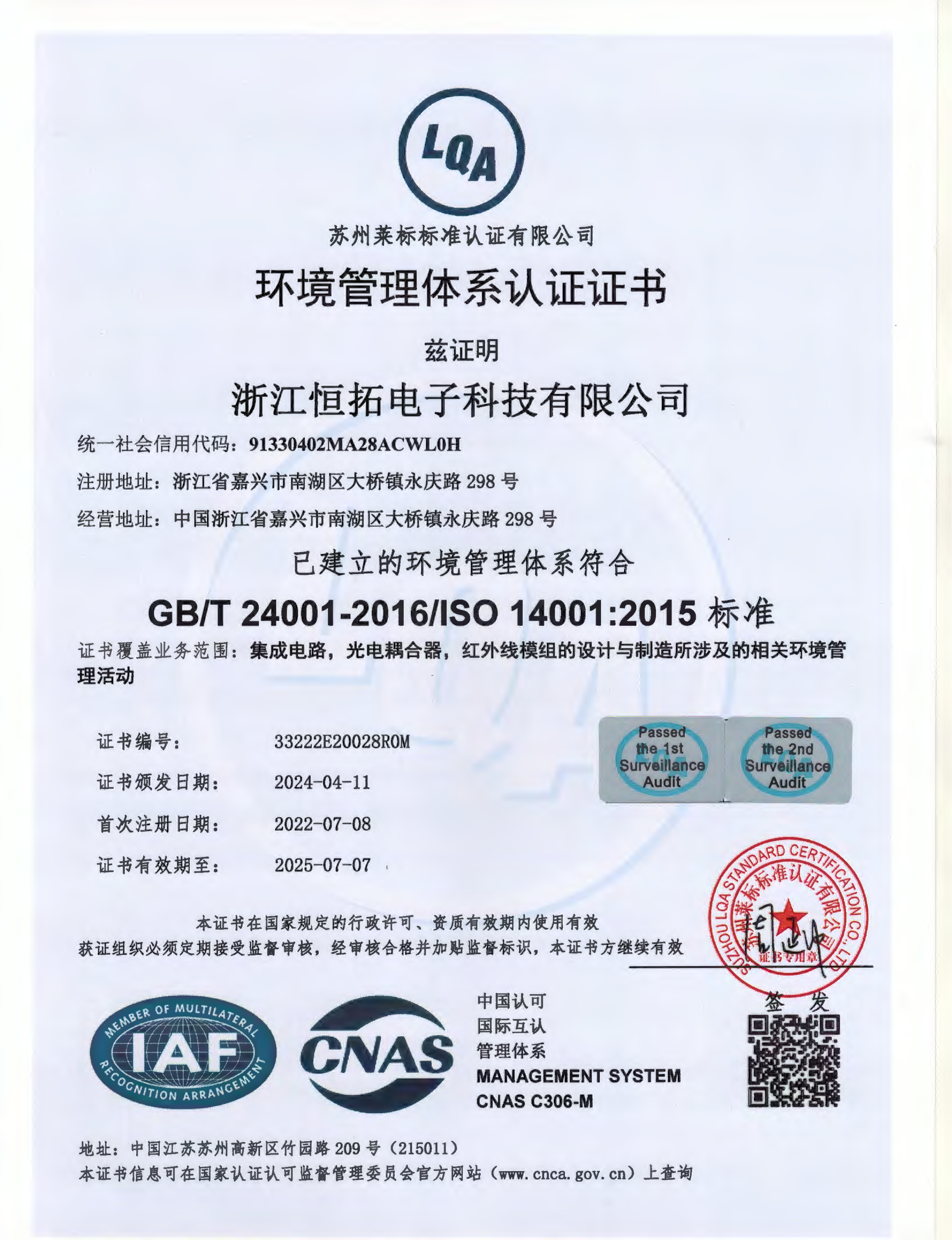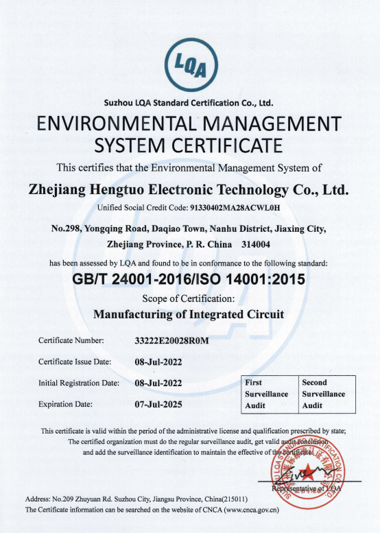 ISO14001環境管理體係(xì)證書